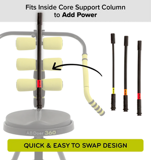 The AB Doer 360 Power Rods Kit includes three resistance rods, providing enhanced resistance during workouts on the AB Doer 360 (sold separately). The rods offer three distinct intensity levels, color-coded as follows: Yellow for Beginner, Orange for Intermediate, and Red for Advanced. Only one resistance rod should be used at a time. This kit enables users to customize their AB Doer 360 experience with triple progressive resistance options. Choose Light (#1/Yellow Label) for an elevated aerobic challenge, Medium (#2/Orange Label) for a cross-training blend of aerobics and muscle toning, or Advanced (#3/Red Label) for optimal calorie burning and muscle conditioning. These resistance rods are easily inserted and removed from the AB Doer 360 machine, allowing for varied resistance levels during your workouts.