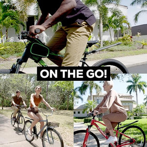 PORTABLE AND VERTICAL BIKE STORAGE RACK: adjustable height for 16in (40cm) wheel size or bigger, fits fat tires, back racks and fenders, suitable for e-bikes with conventional bike seats and bike posts. SIMPLE AND EASY TO ASSEMBLE: frees up to 3 feet of floor space, can stay attached to your bike as you ride for quick, portable bike storage on the go.